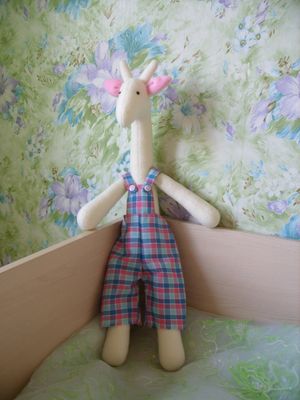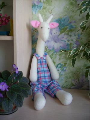 Мягкая игрушка в стиле Тильда - Жираф будет чудесным подарком для ребенка или для украшения Вашего интерьера. Игрушка очень мягкая и приятная на ощупь. Пусть Вас не смущает белый цвет: игрушку можно стирать, комбинезончик снимается и может стираться отдельно. Размер: 65 см в высоту Материалы: флис, хлопок, комфорель.