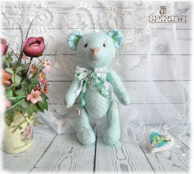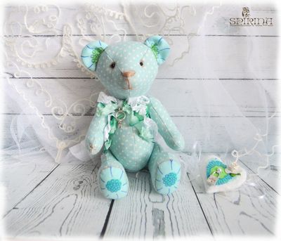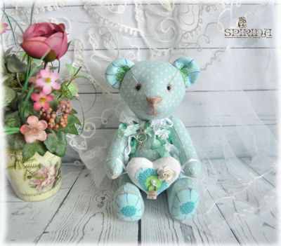 Мишка сшит из льна. Мишка набит синтепоном, голова не поворачивается. Мишка будет прекрасным подарком для влюблённых на день Святого Валентина. Рост 23 см