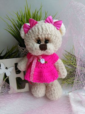 Милая мишка в розовом. Связана с любовью. Платьишко снимается. Срок изготовления- 1 день Материал: пряжа,холлофайбер Размер:23 см