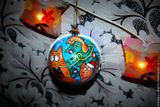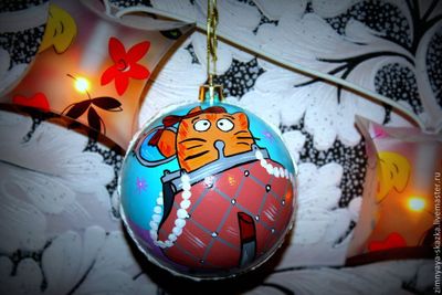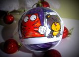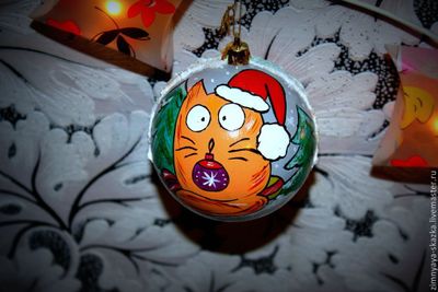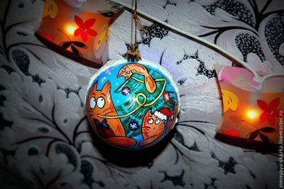 Пластиковые елочные шары с ручной росписью акриловыми красками в ассортименте. Диаметр шара 8 см. Финишное покрытие - акриловый лак.