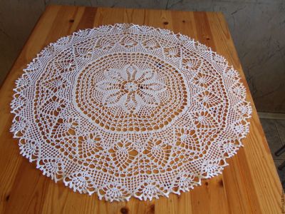 Мини-скатерть( большая салфетка) связана из ниток "Снежинка".Диаметр скатерти 66 см.Готовая работа.Оплата наличными при личной встрече,возможна отправка почтой при 100%-ой предоплате.Тел.89164023191