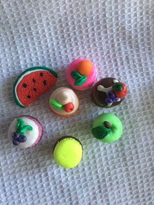 Пирожено и фрукты из полимерной глины в ассортименте, цена указана за штуку, размер 1,5см