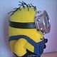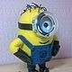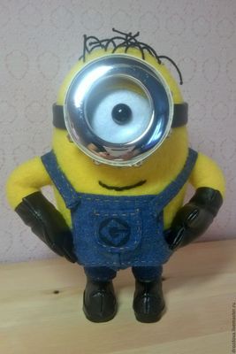 Игрушка стоит самостоятельно. Сшит миньон из флиса. Перчатки и туфли изготовлены из кож.заменителя, комбинезон сшит из джинсовой ткани. Миньон сшит по МК Katrin Black. Цена указана с учетом стоимости доставки. Сделаю под заказ. Размер: 19 см