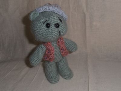 Связано из мохера, шапочка и жилет снимаются, ручки и ножки подвижные