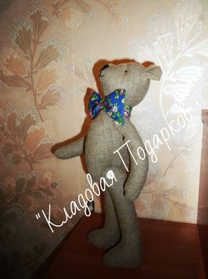 Продается мишка ручной работы, выполнен из натурального экологически чистого льна. Галстук-бабочка снимается. Визуально состарен заплатами. Рост чуть более 30см. Самостоятельно сидит или стоит.