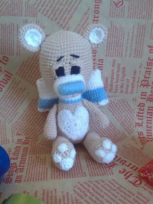 Этот малыш связан на заказ для маленького мальчика, совсем недавно появившегося на свет. Использовала очень мягкую акриловую ниточку, внутри погремушка, на бантике именная бирочка. Кто хочет подарить своим малышам таких милых приятелей, пишите в личку. Сделаю любого звереныша)) так же можете написать мне во ВК в личку или в группу https://vk.com/juliana2708 https://vk.com/sovayuliya