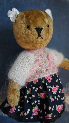 Девочки мишки и зайчики, сшиты из винтажного плюша ручного окраса. Одеты в одежду, сшитую в ручную, украшенную бисером и вышивкой.