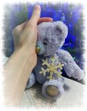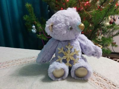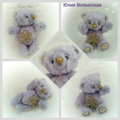 17 см. Синтетический плюш. Искусственная кожа. Набит холлофайбером, утяжелен стеклянным гранулятом. Глазки и носик слеплены вручную. Голова на петельных шплинтах, в лапках т-образные шплинты. Выкройка Гуменниковой Светланы