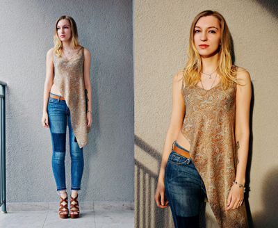 Оригинальный топ ассиметричного кроя. В единичном экземпляре. Состав ткани: шелк с металлизированными нитями. Размер 42-44 Дизайн SHVEA