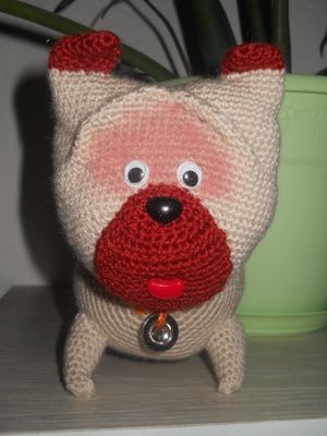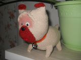 мопс Мэл - герой мультфильма "Тайная жизнь домашних животных", связан из акрила крючком, мордочка тонирована сухой пастелью, наполнитель- синтепон, размер примерно 15 см.