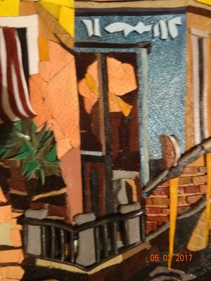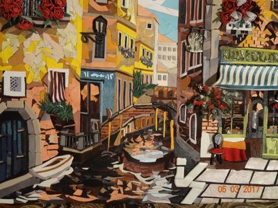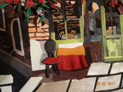 Картина из кожи создана в технике мозаики. Материалы: натуральная кожа, акриловые краски