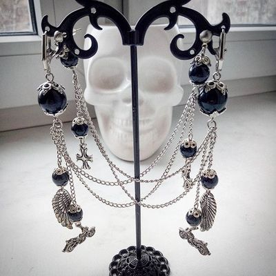 Серьги с авантюрином(синим) . На 2ве дырки для каждого уха ,очень круто смотрится)