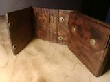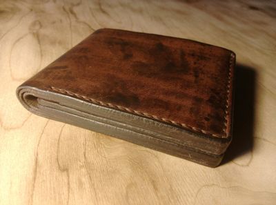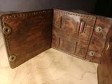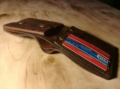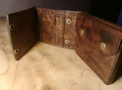 Мужское портмоне от мастерской Eterna. Размеры 12,5*9,5. Два больших отдела для купюр, отделение для карт под монетницей, монетница на двух кнопках, карман для карт SD на 4 карты, дополнительно зафиксированный отделом для кредитных карт на 3 карты, закрывающейся на две кнопки. Возможна небольшая корректировка модели, а также цвета кожи.