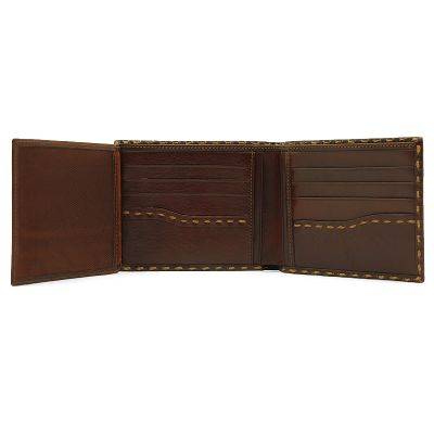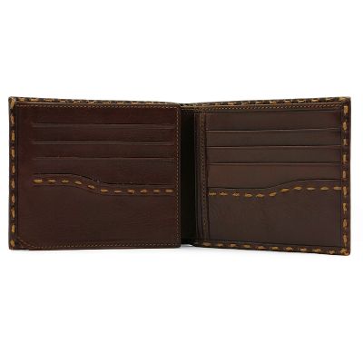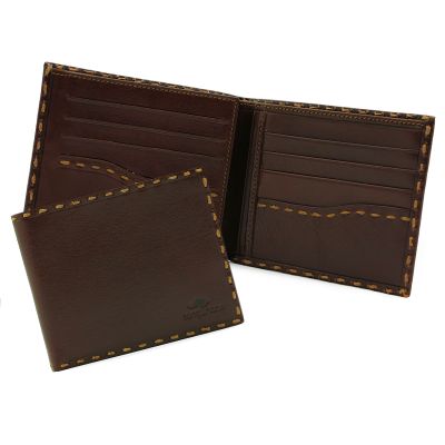Мужское портмоне из натуральной кожи с изящным плетением по контуру. Ручная работа и уникальный дизайн в сочетании с качеством изготовления и удобством в использовании делает такое портмоне идеальным хранилищем для денег, карточек и других важных документов. Внутри 2 отделения для купюр, 12 кармашков для карточек, 4 дополнительных кармана, а также удобное окошко-сеточка. Размер: 11,5 х 9,5 см Материал: натуральная кожа Цвет: темно-коричневый