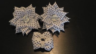 Набор из серии "Школьные" в черно-белом цвете:2 резинки, 2 зажима. Диаметр цветка 9 см,диаметр банта 5 см. В наличии. Возможно изготовление в любом цвете.