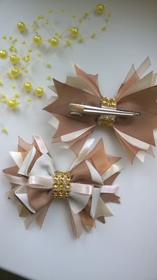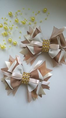 Набор заколок для волос выполнены из репсовых лент. Бантики крепятся к основе 5,5 см. Этот набор будет прекрасным украшением и подарком для девочек