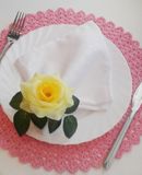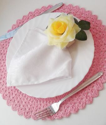 В набор входит столовая салфетка, ланчмат и кольцо для салфетки. Красиво на столе, легко в использовании)