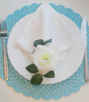 В набор входит столовая салфетка, ланчмат и кольцо для салфетки. Красиво на столе, легко в использовании)