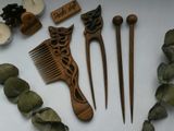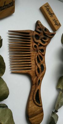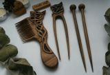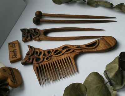 Сложно сказать, когда именно человек придумал вырезать из кусочков древесины украшения. Несомненно, это было очень давно. С тех пор технологии изготовления украшений из дерева сильно изменились,а любовь женщин к аксессуарам из дерева осталась прежней. Аксессуары из дерева актуальны во все времена года. Они радуют своей живой энергетикой, разнообразием естественных расцветок и приятной, теплой фактурой. Тепло дерева чувствует любой кто с ним соприкасается. Сегодняшняя популярность хендмейд техник не обошла стороной и аксессуары для волос. Наши деревянные расчёски для волос изготавливаются полностью вручную, тщательно шлифуются и покрываются льняным маслом. Льняное масло придает дереву естественный оттенок, выделяет рельеф и текстуру дерева. Пропитка поможет, защитит дерево от влаги и гниения. Масло закупоривает мельчайшие поры, в которые больше не просочится вода. Предмет сохраняет исходную текстуру (в отличие от лакированного дерева). Расчёска из дерева требуют особого мастерства и выглядят как настоящие произведения искусства . У деревянных расчёсок есть неоспоримое преимущество перед металлическими аналогами - они не повреждают естественную структуру волос. Каждая расчёска имеет свою неповторимую и уникальную текстуру,созданную природой и форму, созданную мастером. Наш набор для волос будет прекрасным подарком для ваших близких и родных. Возможна продажа по отдельности. Ждем ваших заказов! © https://www.livemaster.ru/item/26044411-suveniry-i-podarki-nabor-dlya-volos-orehovyj Наш instagram: dambo_shop_07 , wood_shop_07