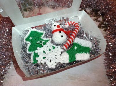 Набор вязаных игрушек на ёлку с декоративными элементами