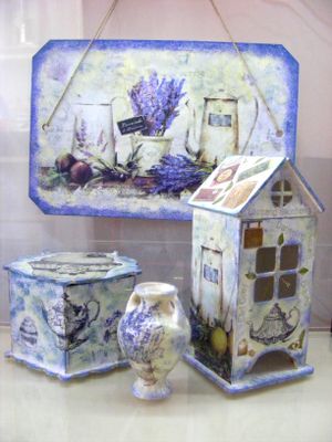 Набор кухонный в прованском стиле (1500 за набор, если по отдельности, то цены указаны к каждому изделию) : - доска декоративная 20*30 см (600 руб.) - чайный домик (550 руб.) - шкатулка (350 руб.) - вазочка (150 руб.)