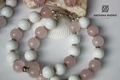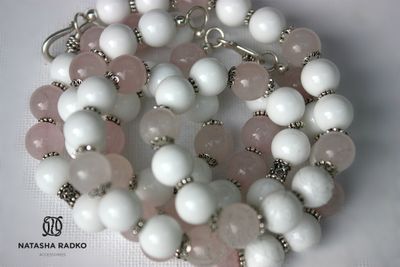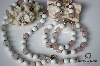 Этот сет подойдет для чувственной, романтической барышни, мечтающей встретить своего мужчину. Ведь розовый кварц обладает магическим действием: способствует внутреннему равновесию, залечивает душевные раны, притягивает внимание противоположного пола. Камни: розовый кварц, агат, в серебре.