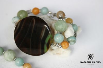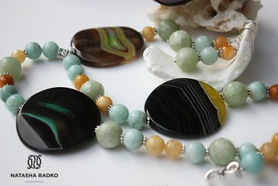 Гармоничное сочетание мелких и крупных камней в этом сете подчеркнет твою индивидуальность. Для смелых девушек, которые не боятся экспериментировать с образами. Камни: агат, амазонит, в серебре.