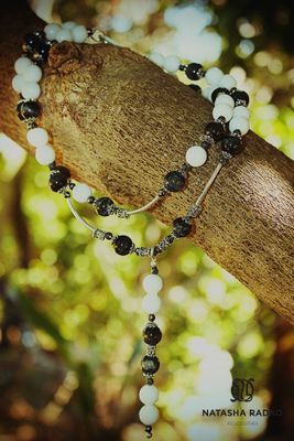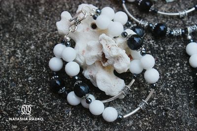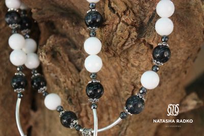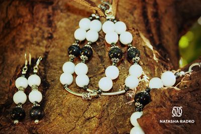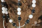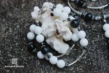 Классическое сочетание белого и черного. Шикарное украшение для стильной девушки. Сет: колье, браслет, серьги. Камни: оникс, агат, в серебре.