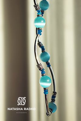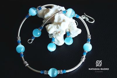 Самая популярная форма колье. Смотрится в деле сногсшибательно. Камни к нему можно заказать любых цветов. В данном наборе: кошачий глаз и агат. Серебро.
