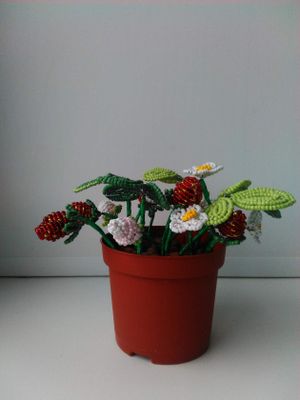 Куст клубники из бисера. Ручная работа