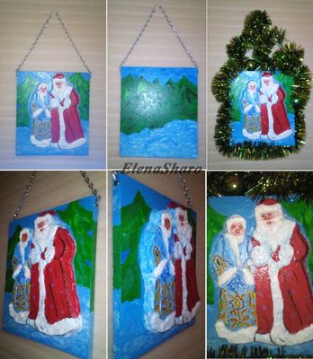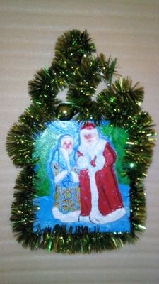 Предлагаю отличное решение для тех, у кого мало места в квартире для елочки, настенную композицию «Дед Мороз и Снегурочка». Размеры: 280ммх250мм (без цепи). Ручная работа. Материалы: пеноплекс, акриловые краски, лак, вата, клей. Цепочку можно украсить новогодней мишурой, повесить елочные игрушки и т.п. Объемные фигуры выходящих из леса Дедушки Мороза и Снегурочки придают реалистичность этой композиции. Пеноплекс – прекрасный материал, в него легко можно иголкой-булавкой прикрепить любое новогоднее украшение. Новогодняя мишура в комплект не входит. Эта композиция, без сомнения, украсить Вашу квартиру в новогодние праздники!!! Впустите в Ваш дом символы Нового года – Дедушку Мороза и Снегурочку!!! Делаю под заказ, срок изготовления – 2 дня. Работа под заказ выполняется после предоплаты. Адресная доставка по Москве – 400 рублей. Отправляю СДЭК, Деловыми линиями, Энергией. WhatsApp, Viber - 925 1568161 Елена.