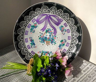 Декоративная тарелка "Незабудки" с фиолетовой ленточкой