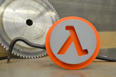 Лампа, основанная на вселенной компьютерных игр Half-life. Декоративный светильник-ночник, настенный, ручной работы, изготовлен из стали толщиной 2 мм, окрашен порошковой краской. Подсветка осуществляется с помощью светодиодной полосы (12 вольт), подключение осуществляется через адаптер питания: (в комплекте) 220 В постоянного тока 12 В, длинный провод - 2 метра.