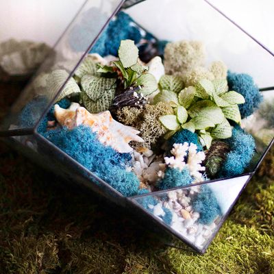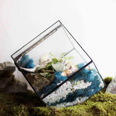 Ночник «Living ocean blue» - это нежная композиция, в которой белёсые оттенки океана и светло — зелёные листья растений вырастают из воздушного синего мха, разлившегося словно яркие воды. Отлично подойдёт для тех, кто любит спать со светом; для тех, кто хочет, чтобы флорариум был акцентом интерьера днём и ночью. Изумительно красивый подарок. Снизу флорариума проклеен мягкий бархат. Форма и размер природных материалов (растения, мох, камни, ракушки) могут немного отличаться. Ночник работает от сети, в комплекте идёт провод с выключателем. ХАРАКТЕРИСТИКИ: Вес 4 кг Габариты 29 х 29 х 29 см МАТЕРИАЛЫ: Ваза: стекло (толщина 2 мм), медь, олово Растения живые: Фиттония светло-зелёная 2 штуки Горные камни: Змеевик/ Мраморная крошка Композиция: Грунт/ Мох ягель «белый»/ Мох ягель «синий»/ Ракушка Ламбис Ширагра/ Ракушка Стромбус Синуатус/ Ракушка Турбо Спарвериус/ Коралл Поциллопора Веррукоса/ Ракушки Насса отбеленная/ Ракушки Планаксис/ декоративные веточки Подсветка: Светодиодная лента белого цвета/ Блок питания 12В ленты УХОД ЗА ФЛОРАРИУМОМ: Уход. Когда поднимаете флорариум, то старайтесь взять его снизу. Поставьте флорариум на ровную устойчивую поверхность, на которой он не будет шататься. Не рекомендуем ставить флорариум на край поверхности, если в доме дети или домашние животные, важно понимать, что такой материал как стекло не любит падений. Протирайте стекло влажным бумажным полотенцем. Не рекомендуем давать растениям удобрения. Свет. Фиттонии любят солнечный свет, поставьте флорариум недалеко от окна, но не под прямые солнечные лучи, иначе листочки растений могут получить ожег (особенно это касается летнего знойного времени года). Вода. Живые растения любят тёплую отстоявшуюся воду. Если вы используете воду из под крана, то дайте возе отстояться, если вы используете фильтрованную воду, то необходимости отстаивать воду нет:) Поливайте растения с периодичностью: летом 20-40 мл на каждое растение, зимой можно чуть реже. Если вы собираетесь в долгое путешествие, перед отъездом полейте растения немного больше чем обычно. Фиттонии достаточно влаголюбивые растения, но перелив не любят. Засуху переносят только кратковременную. Если вы вдруг обнаружили, что растение потеряло былую упругость, то первым делом проверьте почву, если почва слишком сухая, пролейте растение больше чем обычно, 100 - 150мл. Не советуем опрыскивать растения из пульверизатора. ДОСТАВКА ФЛОРАРИУМА: Данный флорариум доставляем только курьером. Если флорариум есть в наличии, то мы доставим его вам на следующий день после подтверждения заказа. Если флорариума нет в наличии, то мы изготовим его в течение 2-3 дней. Стоимость доставки флорариума в пределах МКАД — 290 руб. Стоимость доставки флорариума за пределы МКАД до 20км — 490 руб. Стоимость доставки флорариума за пределы МКАД до 50км — 640 руб