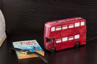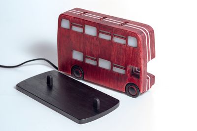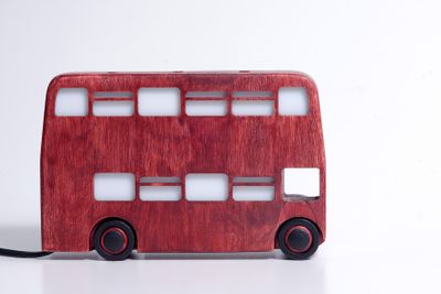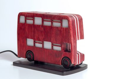 Кто из нас не мечтал побывать в Лондоне – городе, окутанном туманами и легендами! Одной из таких легенд стал знаменитый London Double-Decker Bus (лондонский двухэтажный автобус). Его узнаваемый дизайн и ярко-красный цвет вдохновили нас на изготовление оригинального ночника. Конструкция и размеры ночника позволяют разместить его как на большой плоскости, так и на узких настенных полках и непосредственно на стене (для настенного крепления всё предусмотрено). Ночник сделан из берёзовой фанеры, декорирован водостойкой морилкой. В качестве источника света использована люминесцентная лампа с цоколем Е14, которая потребляет всего 9 Вт. Ночник станет отличным функциональным украшением вашего интерьера или замечательным подарком на любой случай. Вы можете заказать на стандартные рекламные места на обоих бортах автобуса наклейки по вашему желанию как с личными фотографиями и пожеланиями, так и с фотографиями любимых музыкальных исполнителей. Стоимость изготовления наклеек оговаривается индивидуально. Не является игрушкой для детей! Размеры: высота - 13,5 см (14,5 см с подставкой), длина - 20 см, ширина - 5 см (вместе с подставкой – 10 см). Рекомендации по уходу: ночник можно пылесосить и протирать сухой или слегка влажной салфеткой.