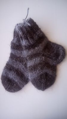 Носочки детские пуховые, связаны спицами, бесшовные, полосатые.Пряжа мягкая, не колючая.Цветопередача зависит от монитора вашего компьютера. Длина стопы 13 см. Свяжу на заказ любое количество в короткие сроки