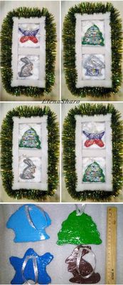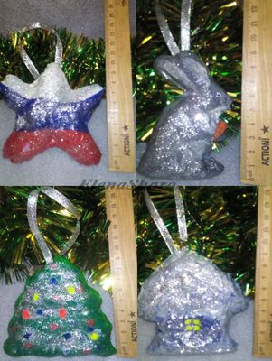 Новогоднее украшение ручной работы. Материал: гипс, акриловые краски, лак. Красивая упаковка. Цена за 4 шт. Упаковать могу по 1 шт. Стоимость каждой игрушки в красивой новогодней упаковке - 600 руб. Упаковка из пеноплекса+новогодняя мишура. WhatsApp, Viber - 925 1568161 Елена.