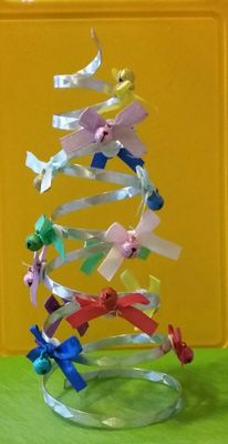 Оригинальная елочка с бантиками и бубенчиками, высотой 16 см) украсит интерьер любого дома