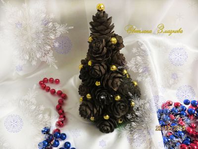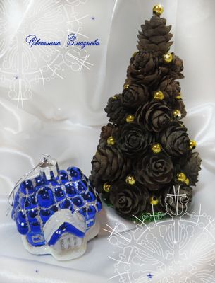 Елочки-сувениры, из натуральных шишек с золотистыми бусинками. Прекрасно подойдет как сувенир коллегам, друзьям, родным и близким людям, как мужчинам так и женщинам. Высота елочки от 15 до 20 см (елочки в разных вариациях и на любой вкус)