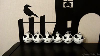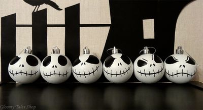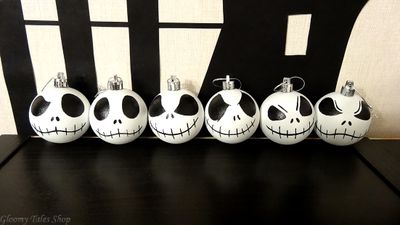 Ёлочные шарики "Джек Скеллингтон" из мультфильма "Кошмар перед Рождеством", ручная работа, выполнена красками по стеклу с покрытием акриловой матовой краской. Исходный материал шарика - пластик. Размер - 6 см. Уход - протирать сухой салфеткой. Стоимость указана за один шарик. При покупке набора из 6 шариков - 2000.