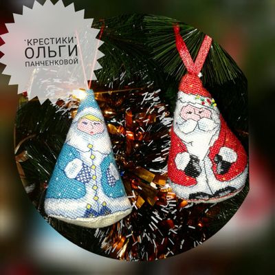 Вишиты полностью крестом. В наличии нет. Под заказ. Изготавливается каждая 10-15 дней. Высота одной из игрушек примерно 10 см. Цена за одну игрушку 1000 руб. Комлект из двух игрушек стоит 1800 руб.