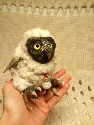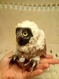 Птенец неотропической совы, искусственная шерсть, полимерная глина, стеклянные глазки, фетр. Шапочка подарок и кулон снимаются.
