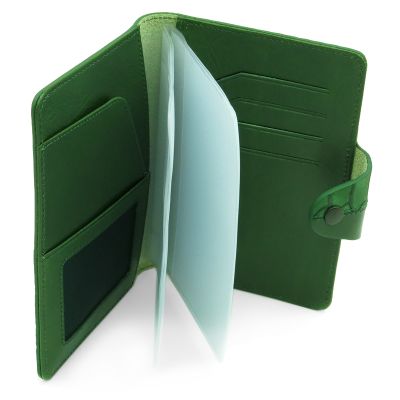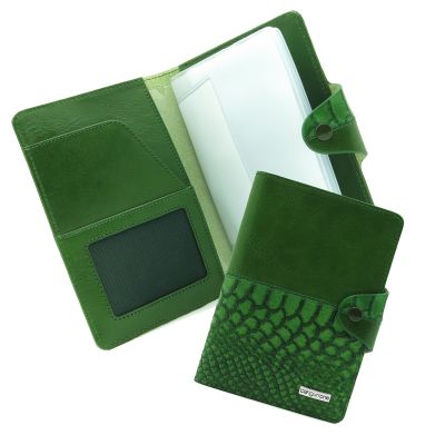 Обложка для автодокументов из натуральной комбинированной кожи: гладкая + с тиснением под крокодилью кожу. Стильная, яркая, современная! Помимо отделения для автодокументов в обложке предусмотрены 4 кармашка для карточек, окошко-сеточка и удобный карман-уголок для размещения документов. Размер: 13,5 х 10 см Материал: натуральная кожа Цвет: зеленый / кроко