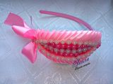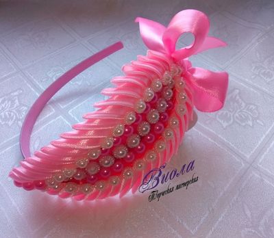 Ободок для волос КАНЗАШИ "Перо" выполнен из атласных лент с использованием декоративных элементов. Основа-обруч пластик в атласе, ширина 1 см