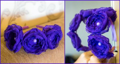 нет в наличии. На заказ! Основа - ободок пластик, оплетен атласной лентой. Цветы - шифон, бусины.