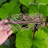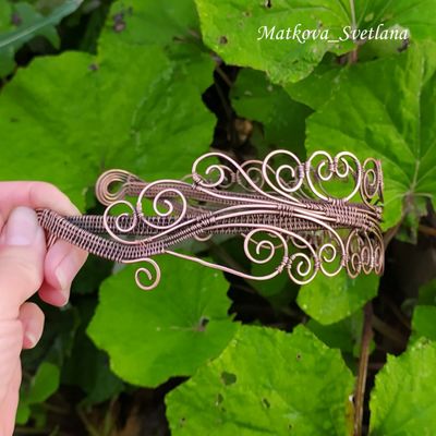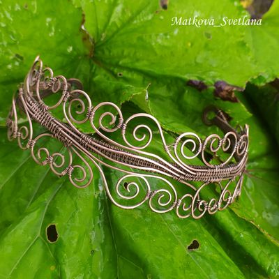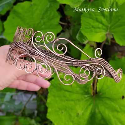 Ободок выполнен из медной проволоки в стиле Wire wrapping. Длина ободка 40 см, ширина 5 см.