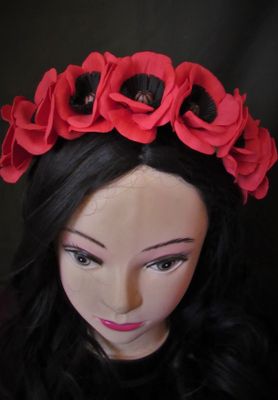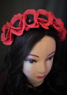 Ободок с маками, выполненными вручную из фоамирана. Есть в наличии, возможно выполнение на заказ с изменением цвета. Стоимость доставки включена в стоимость товара. Осуществляется в любой город РФ. Оплата по договорённости (перевод на банковскую карту или наложенный платёж)