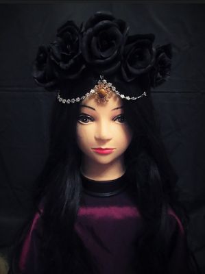 Ободок с крупными розами чёрного цвета. Каждый цветок выполнен вручную. Стиль - готика. Материал: фоамиран Есть в наличии, возможно исполнение на заказ с изменением цвета. Элемент спереди не поддаётся повтору, можно выбрать замену. Стоимость доставки включена в стоимость товара. Осуществляется в любой город РФ. Оплата по договорённости (перевод на банковскую карту или наложенный платёж)