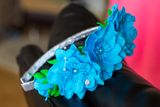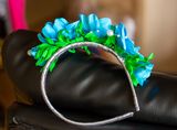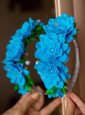 Основа - ободок пластик, оплетен атласной лентой. Цветы из фоамирана. Бусины