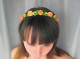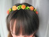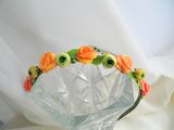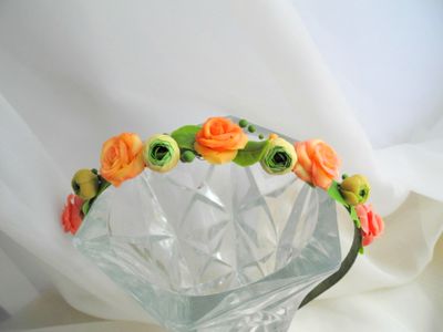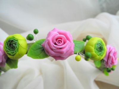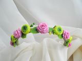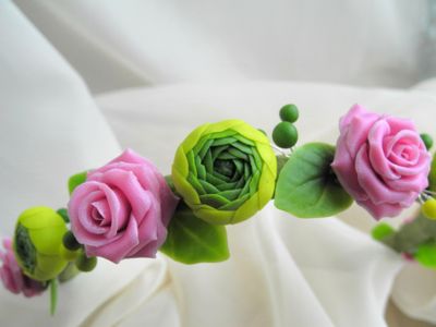 Ободок-венок с цветами из холодного фарфора (роза, ранункулюс). Продан. Под заказ цеты сделаю любого цвета.